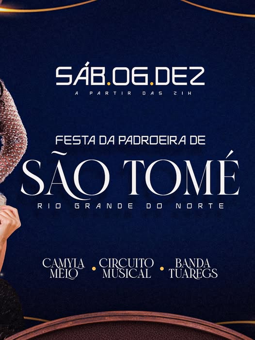 Os dois grandes eventos — a ExpoMÉ 2025 e a Festa da Padroeira 2025 — vão reunir artistas que vão animar e movimentar todo o município.Confira as atrações que vão fazer parte dessa programação especial:🎵 Caju Sanfoneiro🎵 Zé Filho🎵 Augusto Dantas🎵 Saldinho Ribeiro🎵 Camila Melo🎵 Circuito Musical🎵 Ganda TuareguesDo campo à fé, São Tomé celebra …