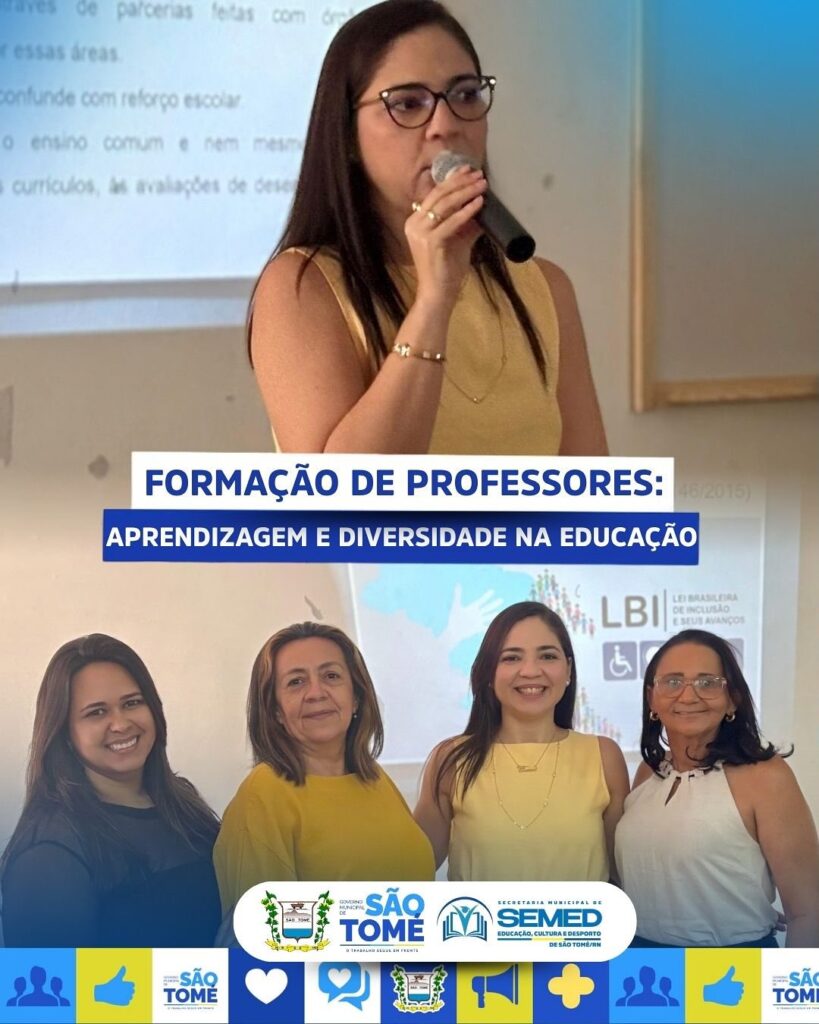 O Governo Municipal de São Tomé, por meio da Secretaria Municipal de Educação, Cultura e Desporto (SEMED), segue investindo na formação continuada dos professores da educação básica.O curso “Desenvolvimento das Aprendizagens na Diversidade”, ministrado pela Prof.ª Dr.ª Elaine Medeiros, reforça o compromisso com uma educação inclusiva e de qualidade, valorizando a diversidade e promovendo práticas …