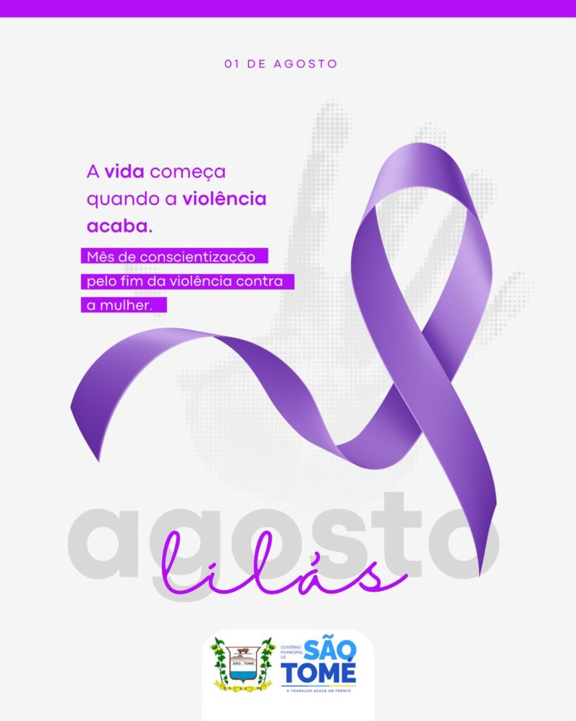 O Governo Municipal de São Tomé reforça seu compromisso com a conscientização e o enfrentamento à violência contra a mulher. Neste Agosto Lilás, unimos esforços para promover o respeito, a proteção e os direitos das mulheres.A vida começa quando a violência acaba.