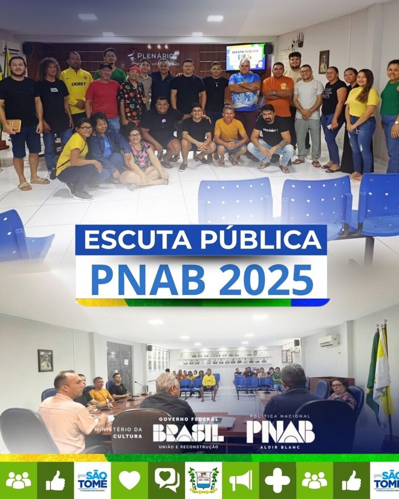O Governo Municipal de São Tomé realizou a Escuta Pública da PNAB 2025 (Política Nacional Aldir Blanc), com o objetivo de ouvir a sociedade civil e os fazedores de cultura sobre a aplicação dos recursos destinados ao setor cultural no município.O encontro ocorreu no plenário da Câmara Municipal e contou com a presença do prefeito …