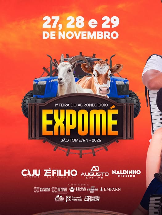 De 27 a 29 de novembro, nosso município celebra a força da agricultura, da cultura e do empreendedorismo local em um evento histórico.E para deixar a festa ainda melhor, teremos grandes atrações animando as noites da ExpoMÉ:🎶 Caju Sanfoneiro🎶 Zé Filho🎶 Augusto Dantas🎶 Saldinho RibeiroDias 28 e 29 prometem muita música, alegria e valorização da …