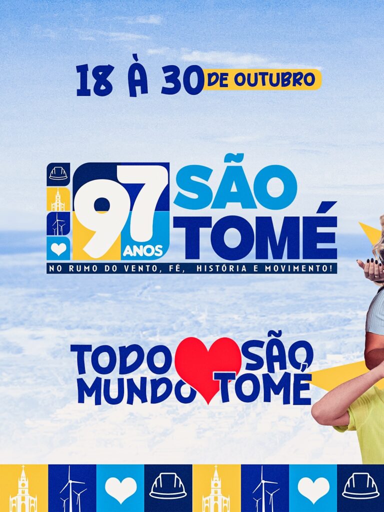 De 18 a 30 de outubro, vamos celebrar nossa história, nossa fé e o vento que sopra progresso!São 97 anos no rumo do vento, da fé, da história e do movimento.Porque aqui, todo mundo ama São Tomé